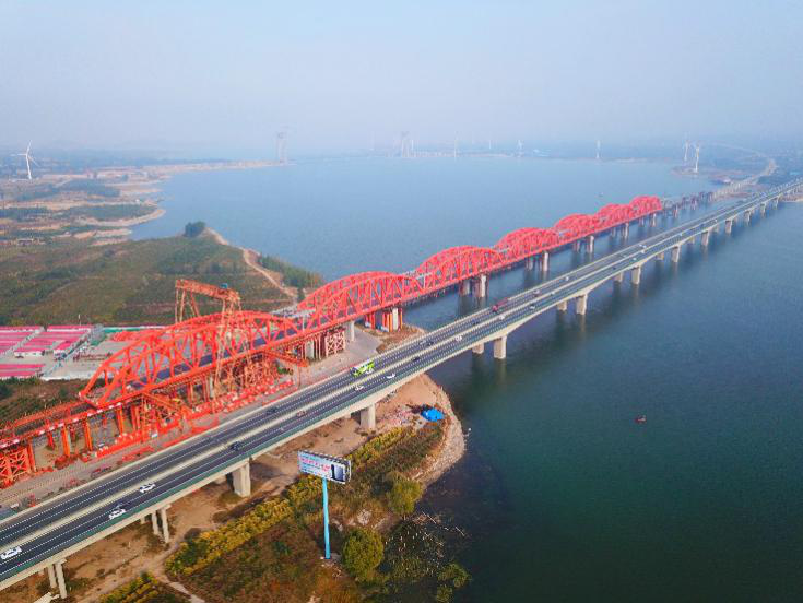 漢十高鐵安陸府河特大橋剛構(gòu)拱提升工程
